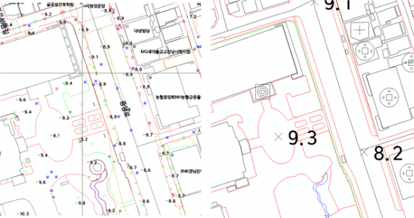 ‘대축척 수치지형도’는 기존 1/5000 수치지형도에서 표시하기 어려웠던 맨홀, 가로등, 신호등 등 도시 기반의 세부적인 요소들의 위치까지 포함하고 있다.