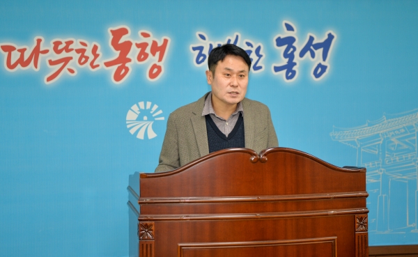 11일 홍성군청 행정홍보지원실에서 진행된 군정홍보 브리핑을 통해 오성환 경제문화농업국장은 소상공인 경영정상화 자금 지원, 소상공인 특례보증의 지원 확대, 지역사랑상품권의 할인정책 변경에 대해 상세히 설명했다.