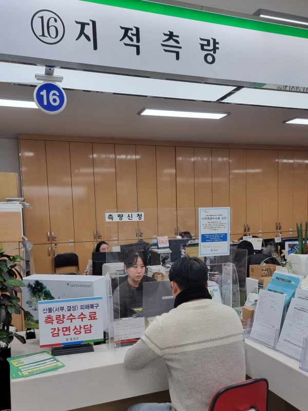 최기순 민원지적과장은 “경제적으로 어려운 시기인 만큼 지적측량 수수료 감면 혜택으로 군민들의 비용 절감에 조금이나마 도움이 되길 바란다”며 “특히 산불피해를 입은 주민들의 지적측량 수수료 감면 기간이 올해 4월 4일까지인 만큼 지적측량이 필요한 산불피해 주민들께서는 수수료 감면 혜택을 받을 수 있도록 기한 내에 지적측량 신청을 서둘러 달라”고 당부했다.