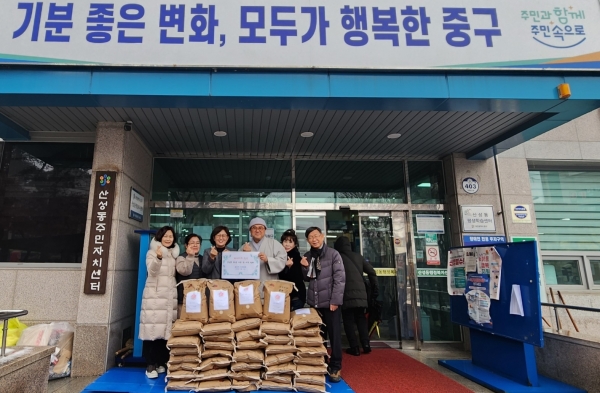[충청뉴스큐] 대전 중구 산성동은 지난 12일 용수사에서 어려운 이웃을 위해 백미 400kg을 기탁했다고 밝혔다.