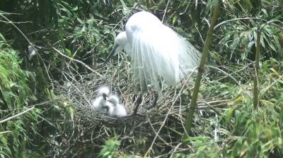 울산시는 태화강철새공원 대나무숲 꼭대기 중백로 둥지에서 지난 달 4월 15일부터 알 세 개가 관찰되었으며, 암수 교대로 알을 품기 시작해 지난 5일 두 마리가 부화하고 8일 나머지 한 마리가 부화되는 모습이 관찰됐다고 밝혔다.