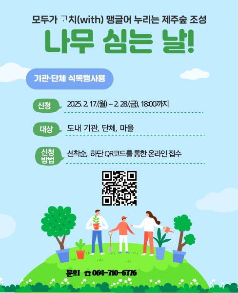 강애숙 제주도 기후환경국장은 “도민들의 자발적인 나무심기 참여는 미래 숲 조성을 통해 기후위기에 제주를 지키는 소중한 첫걸음”이라며 “도민 모두가 함께 참여하는 나무심기 ‘초록동행’ 캠페인에 많은 관심과 참여를 부탁드린다”고 전했다.