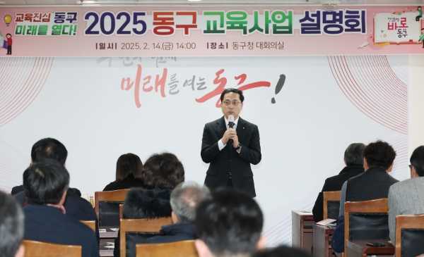 [충청뉴스큐] 대전 동구은 14일 구청 대회의실에서 관내 초·중·고 학교장, 운영위원장 등 70여명이 참석한 가운데, ‘2025년 교육사업 설명회’를 성황리에 개최했다고 밝혔다.