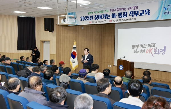 [충청뉴스큐] 보령시는 14일 주교 생활문화센터에서 북부 지역 이장 등 120여명을 대상으로 2025년 찾아가는 이·통장 직무교육을 실시했다.