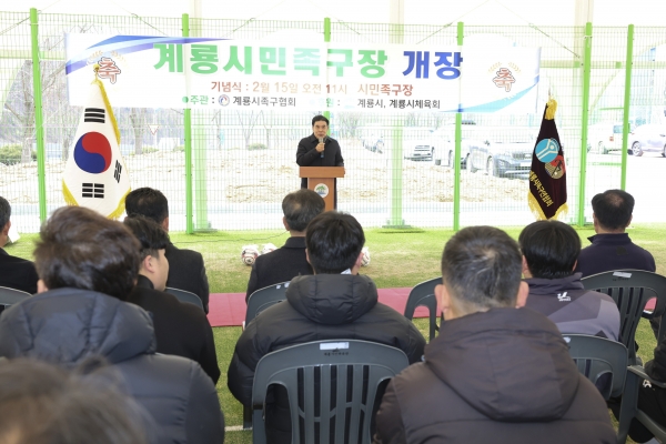 [충청뉴스큐] 계룡시는 지난 15일 엄사면 종합운동장에서에서 비가림시설이 설치된 전천후 족구장 개장식을 가졌다.
