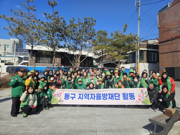 이날 활동에는 동구 지역자율방재단 단원을 비롯해 지역 주민 등 70여명이 참여해 대동 하늘공원 일대 시설물을 점검하고 환경정화 및 해빙기 예찰 활동을 진행했다.