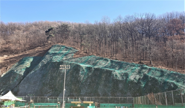 총사업비는 특별교부세 7억원, 구비 1.76억원 등 8.76억원이 투입됐으며 지난해 12월 본격 착공해 낙석 방지를 위한 고기능성 낙석방지망과 울타리 설치를 중심으로 토사 유출 방지를 위한 개비온 옹벽·매트리스 개비온 등 설치, 원활한 배수를 위한 측구 신설 등이 포함됐다.