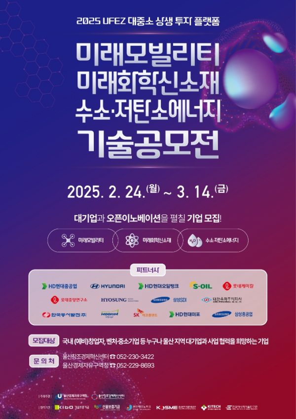 [충청뉴스큐] 울산경제자유구역청은 ‘2025년 울산경제자유구역 대중소 상생 투자 기반 공모전’을 개최한다고 밝혔다.