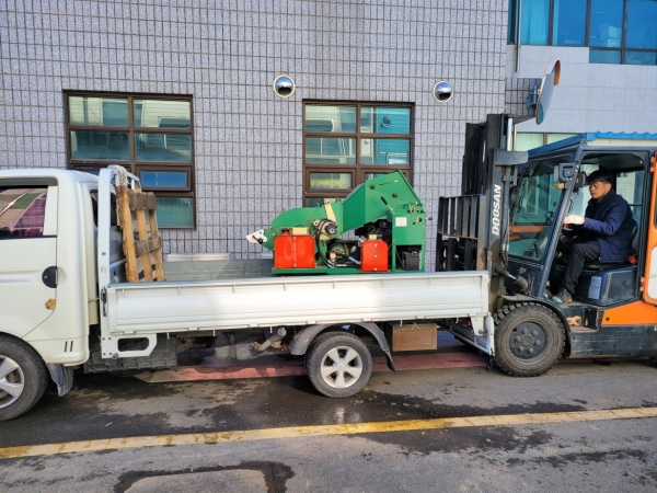 ‘잔가지 파쇄기’는 고춧대와 과수 전정 가지 등 지름 10cm 미만의 영농 부산물을 파쇄해, 불법 소각으로 인한 미세먼지 배출을 줄이고 산불을 예방하는데 도움을 준다.