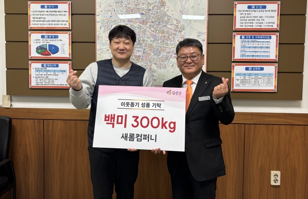 [충청뉴스큐] 새롬컴퍼니는 지난 26일 금산읍행정복지센터에 방문해 지역 내 경로당에 전달해 달라며 100만원 상당 백미 10kg 30포를 기탁했다.