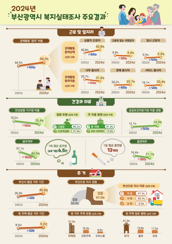 '2024년 부산광역시복지실태조사' 결과에 대한 자세한 사항은 시 빅-데이터웨이브 누리집 통계자료실에서 확인할 수 있다.