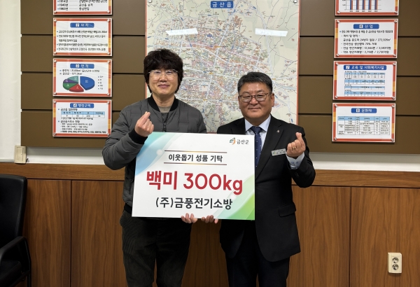 이기영 금산읍장은 “우리 주변의 이웃들을 위해 따뜻한 나눔을 실천하신 ㈜금풍전기소방에 깊이 감사드린다”며 “이웃을 생각하는 따뜻한 마음이 어르신들께 전해질 수 있도록 경로당에 잘 전달하겠다”고 말했다.