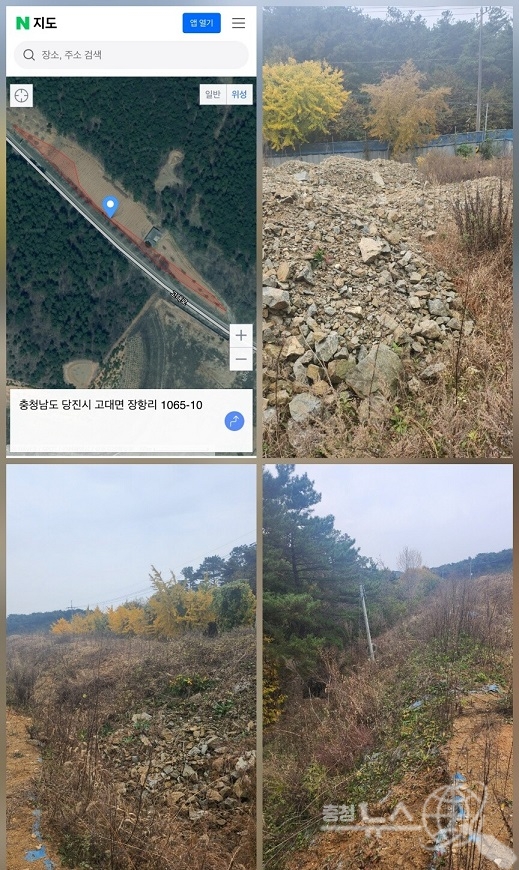문제가 되고 있는 충남 당진시 고대면 장항리 일대 항공사진 및 불법 현장 사진