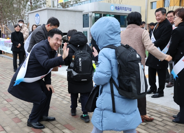 [충청뉴스큐] 이응우 계룡시장이 4일 개교한 대실초등학교에 첫 등교하는 학생 격려에 나섰다.