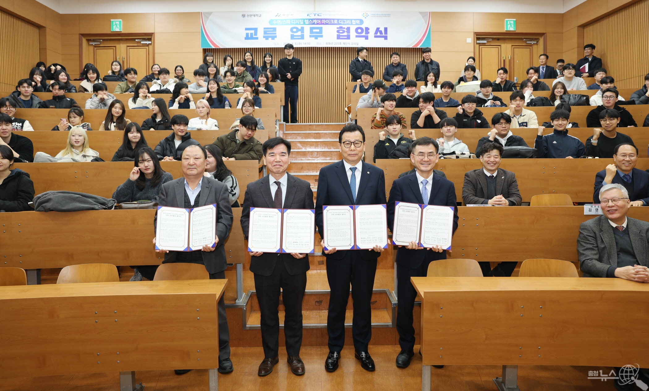 협약식은 3월 5일 선문대에서 진행되었으며, 이번 협약을 통해 ▲수면·스파 디지털 헬스케어 산업 관련 교육과정 개발 및 운영 ▲현장 중심의 실무교육 제공 ▲지역 전문 인재 양성 ▲관·학·연 연계를 통한 지역경제 발전 도모 등의 내용이 포함되었다.