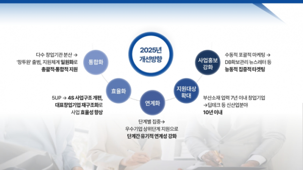 시는 올해 부산기술창업투자원 출범으로 창업지원체계를 일원화해 총괄적·통합적 지원을 하며 '4에스' 프로그램으로 사업구조를 개편해 사업 효율성을 향상하고 우수기업 상위단계 지원으로 단계간 유기적 연계성을 강화하는 등 성장단계별 창업기업의 안정적 성장을 지원한다.