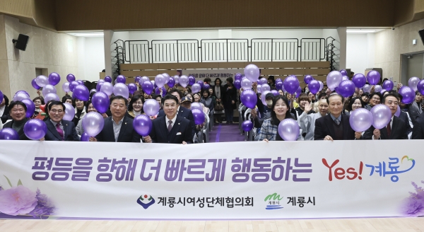 [충청뉴스큐] 계룡시는 지난 6일 청소년별마루센터에서 ‘평등을 향해 더 빠르게 행동하는 Yes 계룡’ 이라는 주제로 여성의 날 기념식을 개최했다고 밝혔다.
