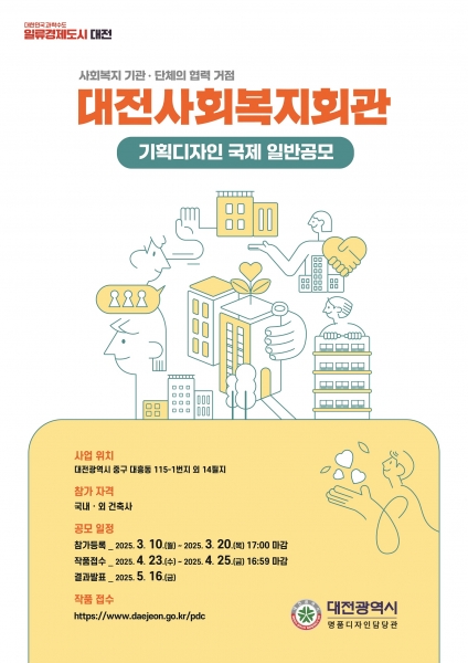 이어 2025년에는 대전사회복지회관을 포함한 총 6개 사업의 기획 디자인 공모를 연속적으로 진행하며 공공건축이 지닌 공간적 가치를 극대화하고 보다 창의적인 설계안을 발굴하는 등 도시 디자인 혁신을 가속화한다는 방침이다.