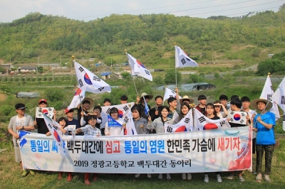3년째 이 활동에 참여하고 있는 정광고 3학년 이한빈 학생은 “날씨는 더윘지만 선생님과 친구들이 의미있는 활동에 참여할 수 있어 좋았고, 백두대간 일대의 지리적 특성을 이해하고 남북한이 통일될 수 있는 분위기를 조성해 뿌듯한 마음이다”고 소감을 밝혔다.