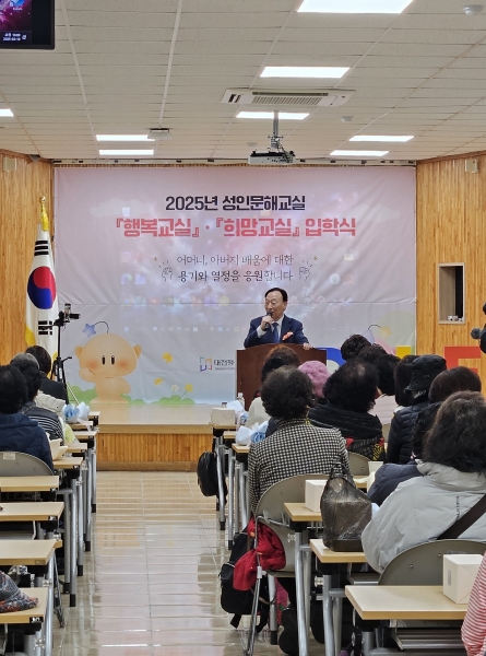 [충청뉴스큐] 대전평생교육진흥원은 3월 10일 오전 10시 컨퍼런스홀에서 2025년 성인문해교실 행복교실 희망교실 입학식을 가졌다.