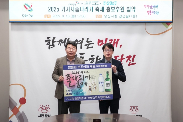 ㈜선양소주는 전달식 이후 자사 소주 20만 병에 기지시줄다리기 축제를 홍보하는 라벨을 부착해 유통하고 당진 지역을 중심으로 충남도 내에 유통할 예정이며 포스터 500매를 제작·배포해 본격 홍보에 나설 예정이다.