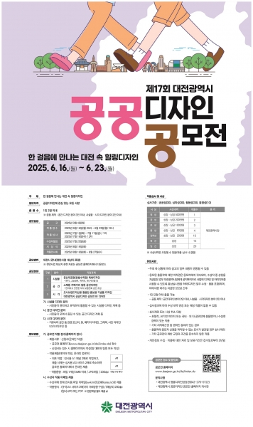[충청뉴스큐] 대전시는 시민이 직접 참여하는 공공디자인을 통해 더욱 품격 있는 도시로 나아가고자 ‘제17회 공공디자인 공모전’을 개최한다.