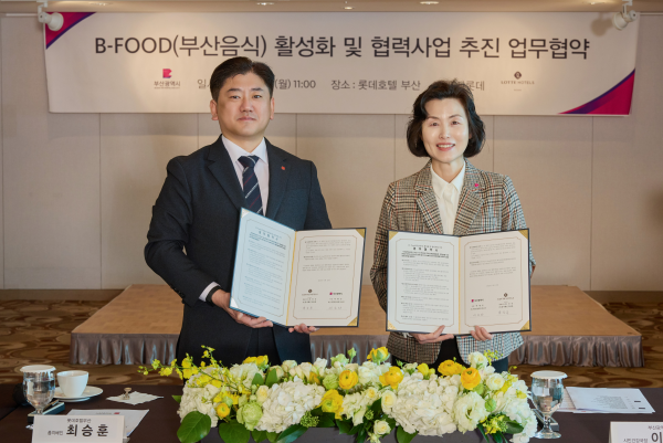 [충청뉴스큐] 부산시는 어제 오전 11시 ㈜부산롯데호텔 샤롯데룸에서 ㈜부산롯데호텔과 ‘부산음식 활성화 및 협력사업 추진 업무협약’을 체결했다고 밝혔다.
