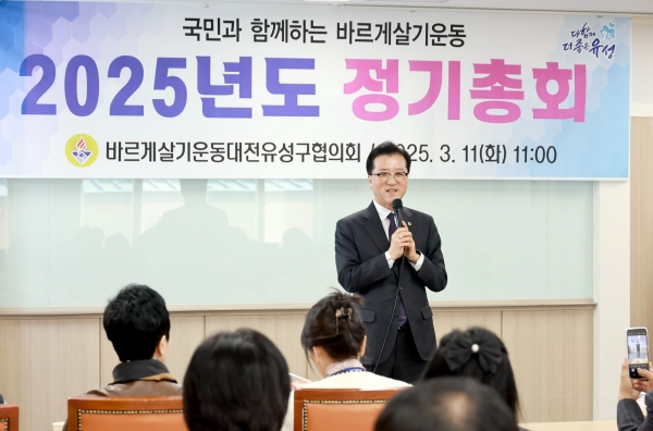 [충청뉴스큐] 대전시의회 조원휘 의장은 11일 바르게살기운동 대전시유성구협의회에서 개최된 2025년 정기총회에 참석해 바르게살기운동 정신 실천에 앞장서며 지역사회에 헌신해 온 유성구협의회 회원들에게 감사를 표했다.