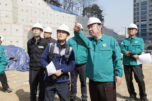 이 시장은 현장을 둘러보며 지반 침하 여부, 흙막이 시설, 절개지 및 구조물의 안전성 등을 꼼꼼히 점검했다.