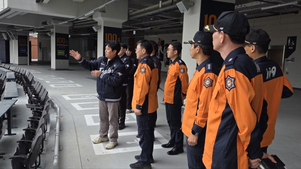 [충청뉴스큐] 대전소방본부는 12일 시즌 개막전을 앞둔 대전한화생명볼파크를 방문해 층별 소방시설 설치 상태를 확인하고 시설 관계자를 대상으로 소방시설 사용법을 설명하는 등 현장 안전관리에 대한 컨설팅을 제공했다.