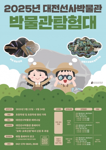 [충청뉴스큐] 대전선사박물관은 2025년 상반기 새 학기를 맞아 3월부터 5월까지 매달 2회씩 총 6회에 걸쳐 박물관 세미나실에서 박물관탐험대를 운영한다.
