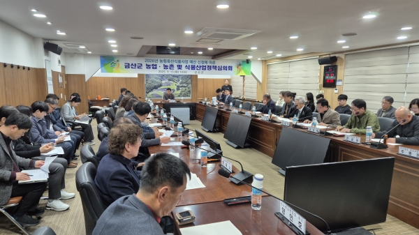 [충청뉴스큐] 금산군 지난 13일 군청 상황실에서 농업·농촌 및 식품산업 정책심의위원회 회의를 개최하고 내년 농림 예산 566억원을 신청하기로 했다.