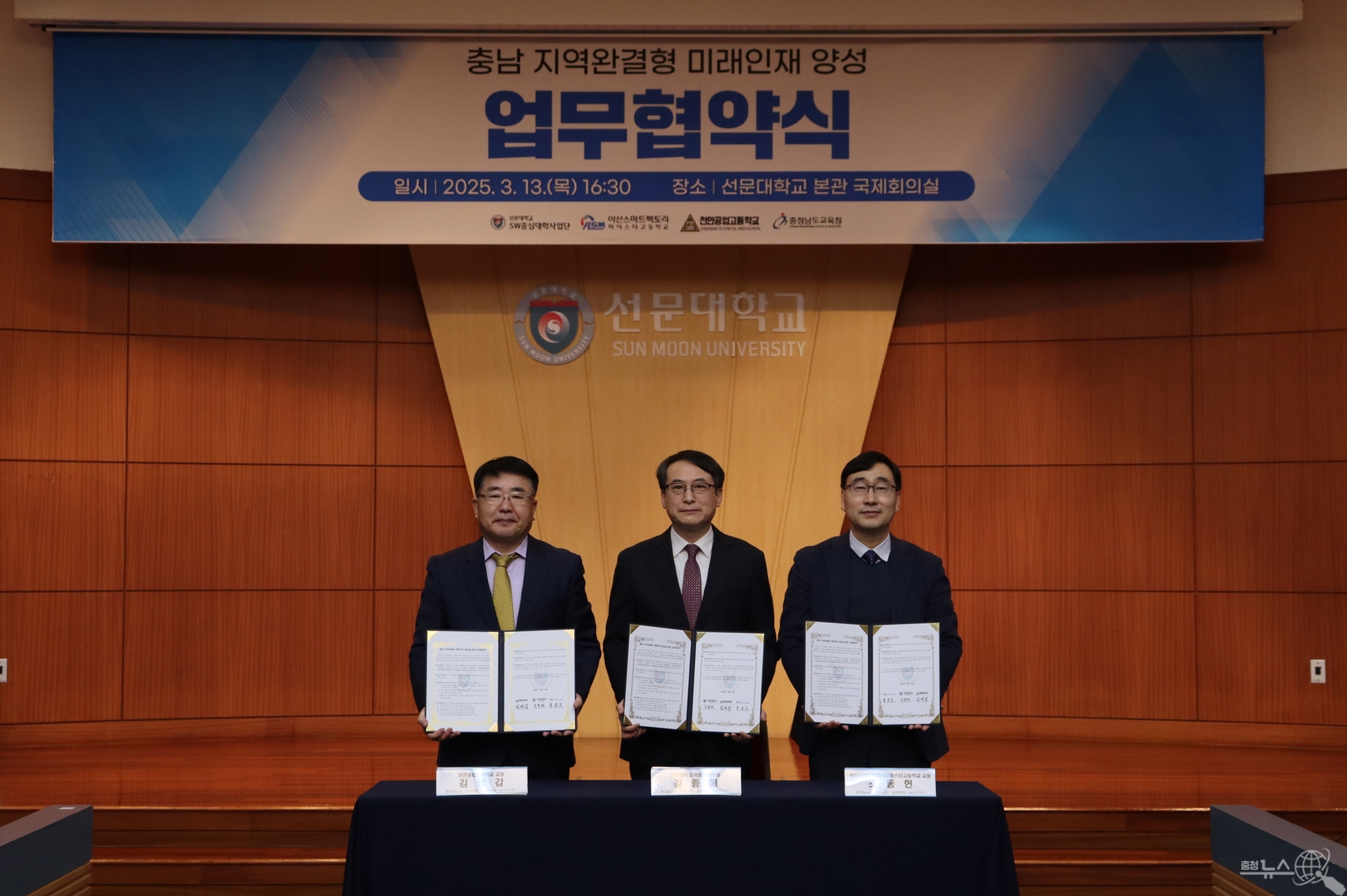 이번 협약식에는 선문대 RISE사업단(단장 김종해), 아산스마트팩토리고등학교(교장 조동헌), 천안공업고등학교(교장 김병갑), 충남교육청 관계자가 참석했다.