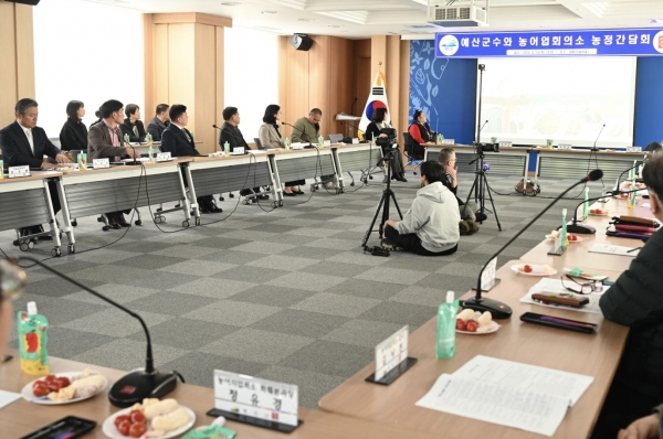 [충청뉴스큐] 예산군은 농업·농촌의 현장 목소리를 듣고 농정 발전 방안을 모색하기 위해 지난 13일 군청 대회의실에서 농어업회의소 회원과 간담회를 개최했다.