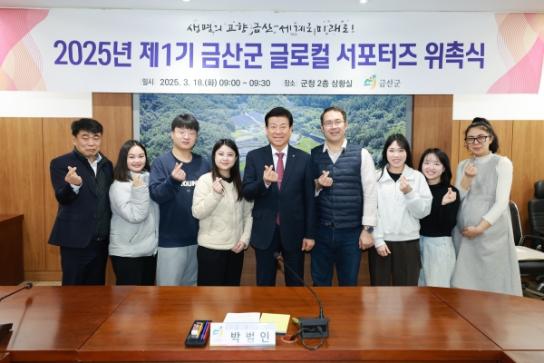 [충청뉴스큐] 금산군은 지난 18일 군청 상황실에서 제1기 금산군 글로컬 서포터즈 위촉식을 개최했다.