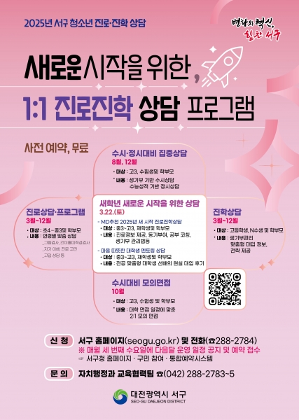 [충청뉴스큐] 대전 서구가 학부모와 청소년을 위한 2025년 진로·진학 상담 프로그램을 본격 운영한다고 이달 19일 밝혔다.