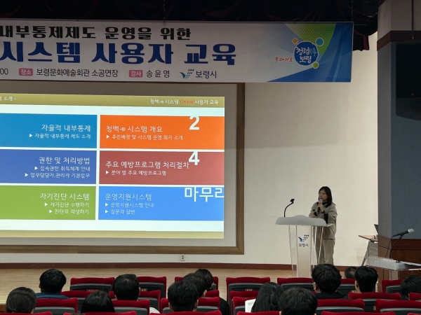 [충청뉴스큐] 보령시는 지난 19일 자율적 내부통제 제도의 효율적 운영을 위한 청백e 시스템 사용자 교육을 실시했다.