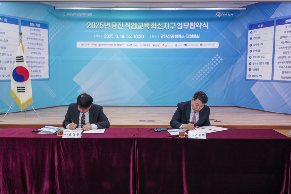 이번 협약은 2024년 협약에 이은 두 번째 협약으로 당진교육지원청과 11개 기업 관계자가 참석한 가운데 진행됐으며 2025년 당진 직업교육 혁신지구 참여 기업을 추가로 모집해 기업 맞춤형 인재를 육성하고 이들의 취업과 정착을 지원하고자 체결됐다.