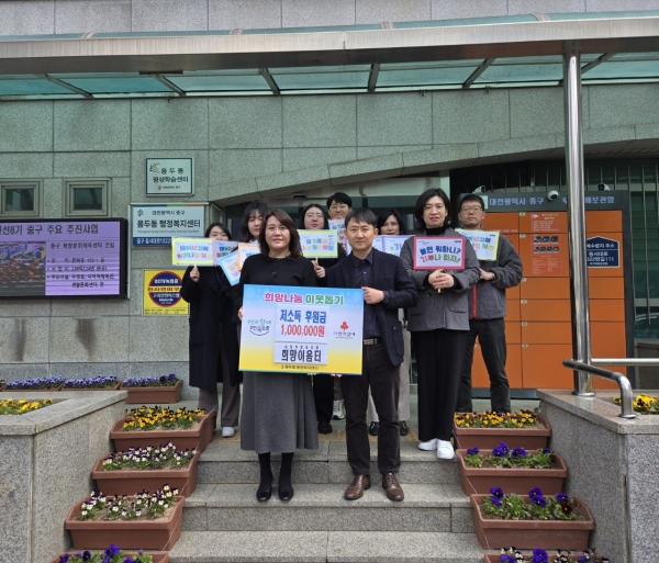 [충청뉴스큐] 대전 중구 용두동은 20일 사회적협동조합 희망이음터에서 홀로 사는 어르신과 취약계층을 위해 성금 100만원을 기탁했다고 밝혔다.