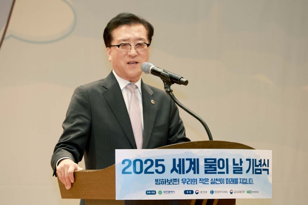 [충청뉴스큐] 대전시의회 조원휘 의장은 20일 대전시청에서 개최된 2025년 세계 물의 날 기념식에 참석해 기후위기 시대를 대응하기 위한 체계적인 물관리 정책과 물 산업 육성을 강조했다.