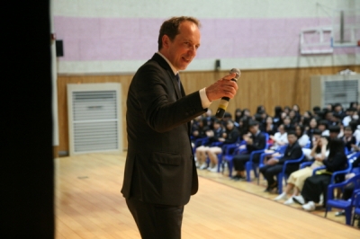 [충청뉴스큐] 파비앙 페논 주한프랑스대사가 지난 13일 미추홀외고를 방문해 학교장을 비롯한 교육관계자들과 간담회 자리에서 프랑스어 교육 발전에 대해 논의한 후, 대강당에서 450여 명의 학생을 대상으로 ‘한국-프랑스, 양국의 관계’를 주제로 특별강연을 했다.