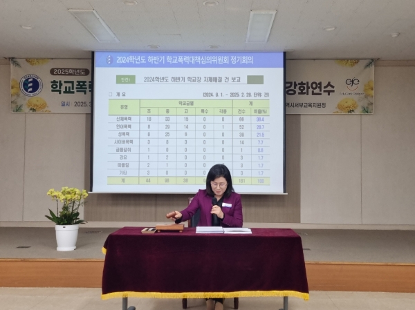 이번 정기회의에서는 2024학년도 하반기 서부교육지원청 관할 초·중·고 172교에서 발생한 학교폭력 사안 중 학교장 자체해결 181건과 학교폭력대책심의위원회 각 소위원회별 심의·의결 231건의 현황이 보고됐다.