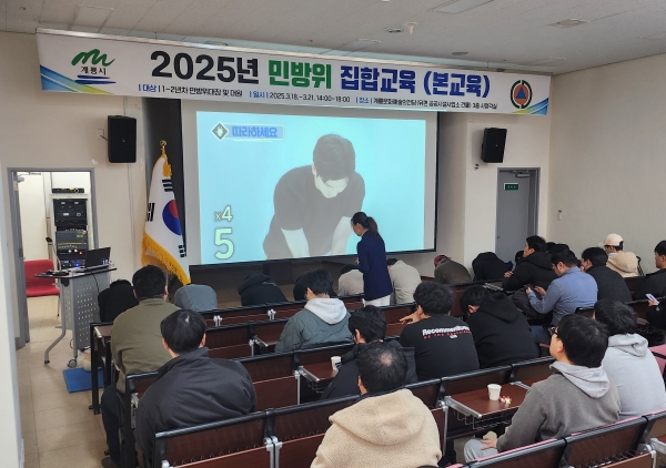 이번에 열린 집합교육은 민방위 기본소양과 화생방, 심폐소생술 등 응급처치, 지진 및 화재 대응 등 비상사태나 재난상황에 대한 대응 능력 향상에 주안점을 두고 진행됐다.