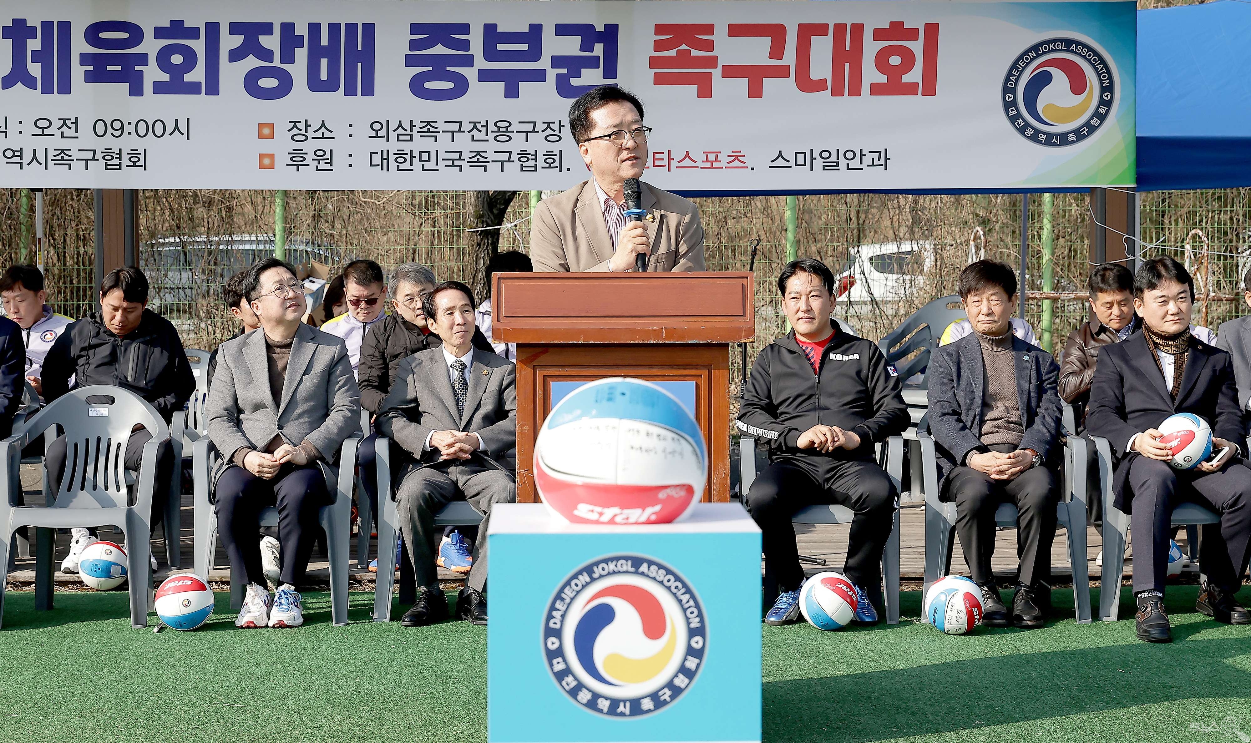 [충청뉴스큐] 대전시의회 조원휘 의장은 23일 유성구 외삼족구전용구장에서 개최된 제20회 대전광역시체육회장배 중부권 족구대회에 참석해 원활하고 안전한 대회 진행을 기원하며 생활체육 활성화를 위한 체육 인프라 확충을 약속했다.