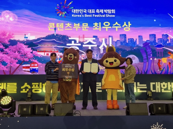 [충청뉴스큐] 공주시가 ‘제5회 대한민국 대표 축제박람회’에서 콘텐츠 부문 ‘최우수상’을 수상했다.