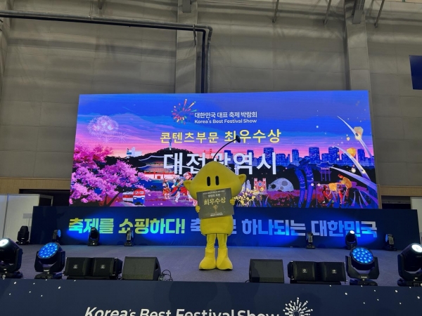 [충청뉴스큐] 대전시는 대전관광공사와 21일부터 23일까지 부산 벡스코에서 열린 ‘제5회 대한민국 대표 축제 박람회’에 참가해 콘텐츠 부문 최우수상을 수상했다.