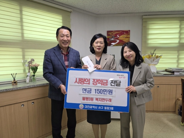 심순섭 월평3동장은 “복지만두레가 매년 꾸준히 지역사회를 위해 장학금을 전달해 주어서 감사드린다”며 “앞으로도 행정과 지역사회가 협력해 미래 인재에 대한 지원을 아끼지 않겠다”고 말했다.