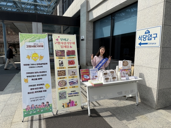 부여군은 구내식당 앞에서 옥경식품의 전통식혜와 단호박식혜를 나눠주며 부여군 답례품을 소개해 고향사랑기부제에 대한 호응을 높이는 데 주력했다.