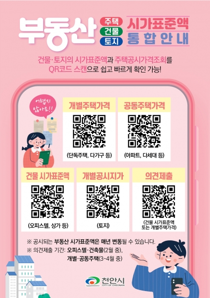 [충청뉴스큐] 천안시는 부동산 종류별 시가표준액 정보를 간편하게 조회할 수 있도록 큐알코드 통합안내문을 제작한다고 27일 밝혔다.