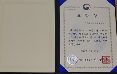 특히 청소년 사회 안전망 구축을 위해 학교밖 청소년 중장기 쉼터와 MOU를 체결하고 찾아가는 자존감 회복 프로그램을 운영해 위기청소년의 보호 육성에 기여한 부분을 인정받았다.